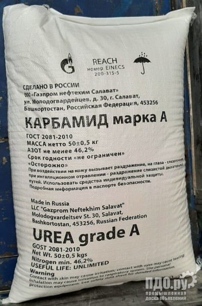 2. Карбамид ГОСТ 2081-2010, от 27000, 00 р/т марка А или марка Б, мешки по 50 кг или МКР 1000 кг. производство ООО «Газпром нефтехим Салават». В наличие есть (Карбамид некондиция) массовая доля азота – 46 %.